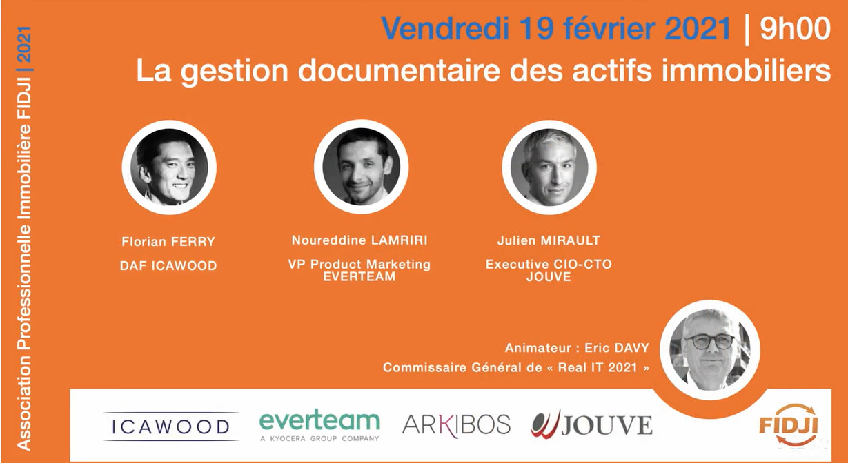 Ce webinaire est organisé conjointement par l’Association Professionnelle Immobilière FIDJI avec les sociétés Icawood, Everteam, Jouve et Arkibos.