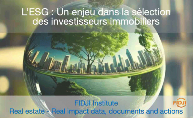 L’ESG : un enjeu dans la sélection des investisseurs immobiliers par Arnaud MÜLLER membre du bureau exécutif de l’institut FIDJI